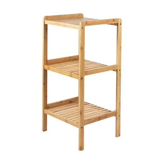 AD.CON Badezimmerschrank Bambus Badregal mit 3 Ablagen und 1 Schranktür 87x66x33cm