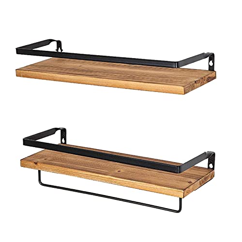 Handtuchhalter Wandregal 2 Schichten Holzregal Badregal mit Handtuchhalter Holz Metallregal Vintage für Badezimmer Flur Wohnzimmer Schlafzimmer (Beige)